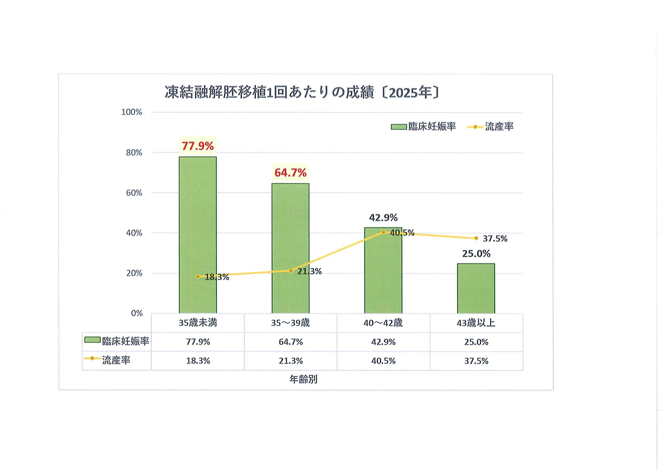 めぐみクリニックでは採卵により良好な胚(受精卵)を獲得、選別するために卵巣刺激法の選択や胚のタイムラプス培養による発育の観察などを丁寧に行っております。そして胚移植は妊娠の可否をわけるとても重要な最終ステップです。得られた患者様の大切な胚が妊娠、出産につながる可能性を最大化できるよう、胚移植の手技向上、個別化対応には開院以来妥協せず注力してきました。2025年も非常に良好な治療成績をおさめることができました。